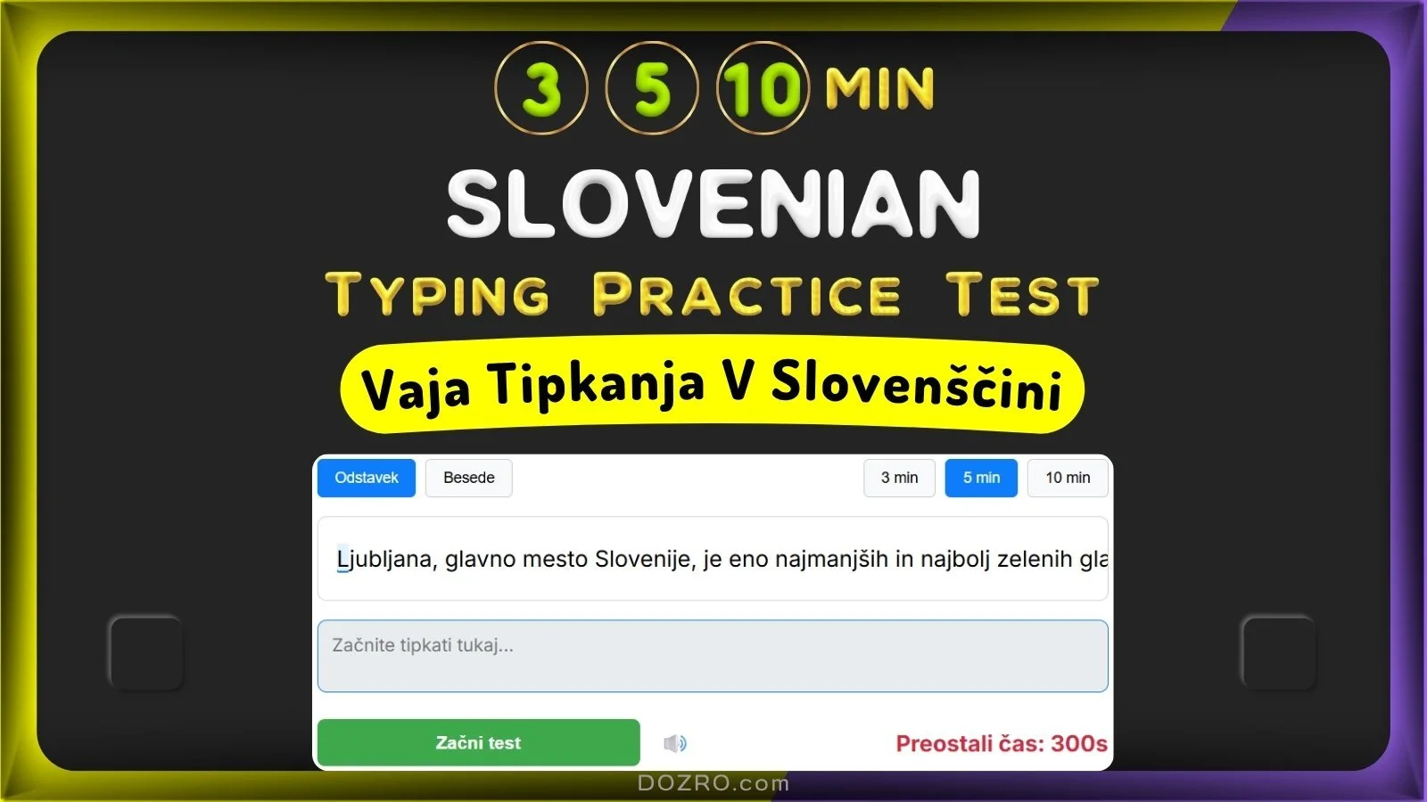 Slovenian Typing Test 3, 5, 10 Min – Vaja Tipkanja V Slovenščini | Keyboard Exercises