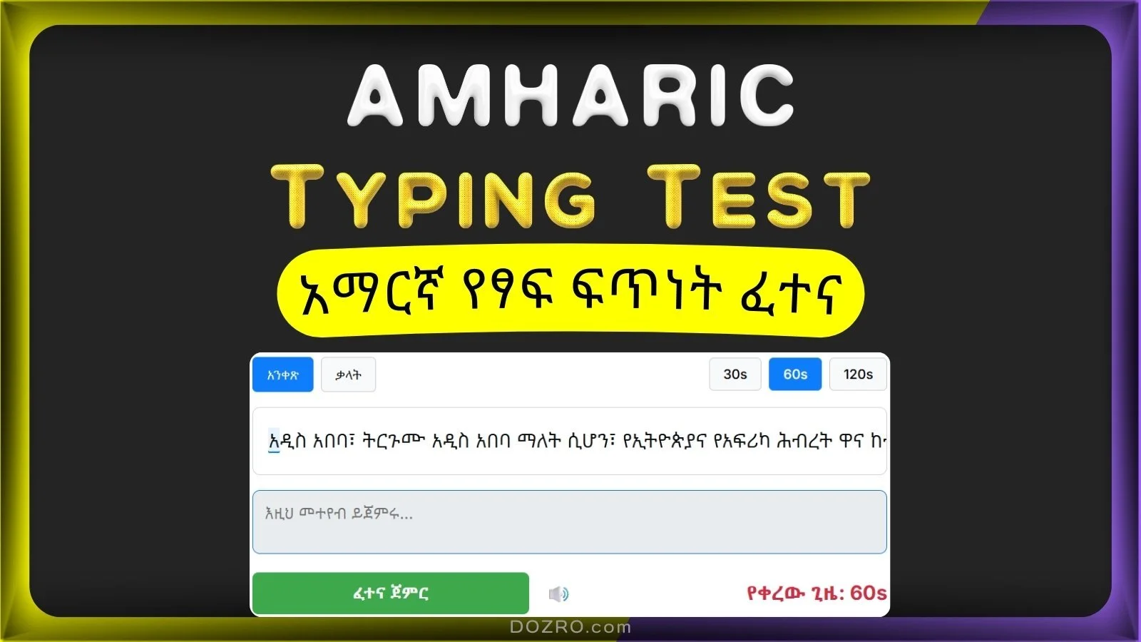 አማርኛ የትየባ ፍጥነት ፈተና በ Dozro