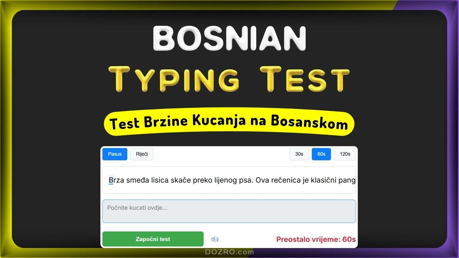 Bosnian Typing Test – Test Brzine Kucanja na Bosanskom | 30s, 60s, 120s Practice